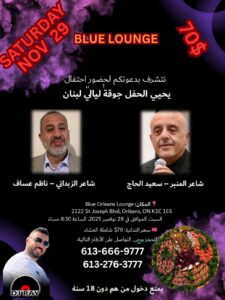 Home Events An Evening of Zajal An Evening of Zajal + Add to Google Calendar + iCal / Outlook export Date Nov 29 2025 Time 8:30 pm Local Time Timezone: America/New_York Date: Nov 29 2025 Time: 8:30 pm