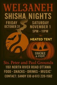 Home Events Shisha Nights ولعانه Shisha Nights ولعانه + Add to Google Calendar + iCal / Outlook export Date Oct 31 2025 - Nov 01 2025 Time 5:00 pm - 11:00 pm Local Time Timezone: America/New_York Date: Oct 31 2025 - Nov 01 2025 Time: 5:00 pm - 11:00 pm
