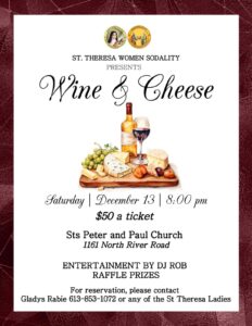 Home Events Wine & Cheese – St. Theresa Women Wine & Cheese – St. Theresa Women + Add to Google Calendar + iCal / Outlook export Date Dec 13 2025 Time 8:00 pm Local Time Timezone: America/New_York Date: Dec 13 2025 Time: 8:00 pm